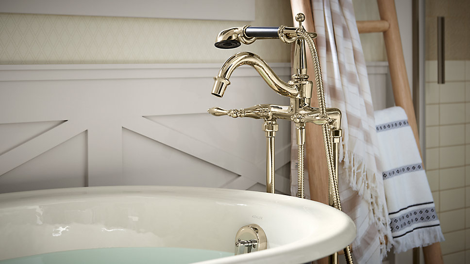 With their graceful curved lines and classical silhouettes, Finial Traditional faucets match an assortment of bathroom styles. This Finial bath faucet trim features a high-arch spout with an aerator to help conserve water and reduce splash.
