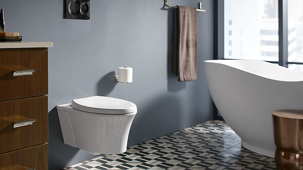 Veil® wall-hung toilet’s sophisticated design makes it easy to clean as well as attractive. Compatible with C3 bidet seat.