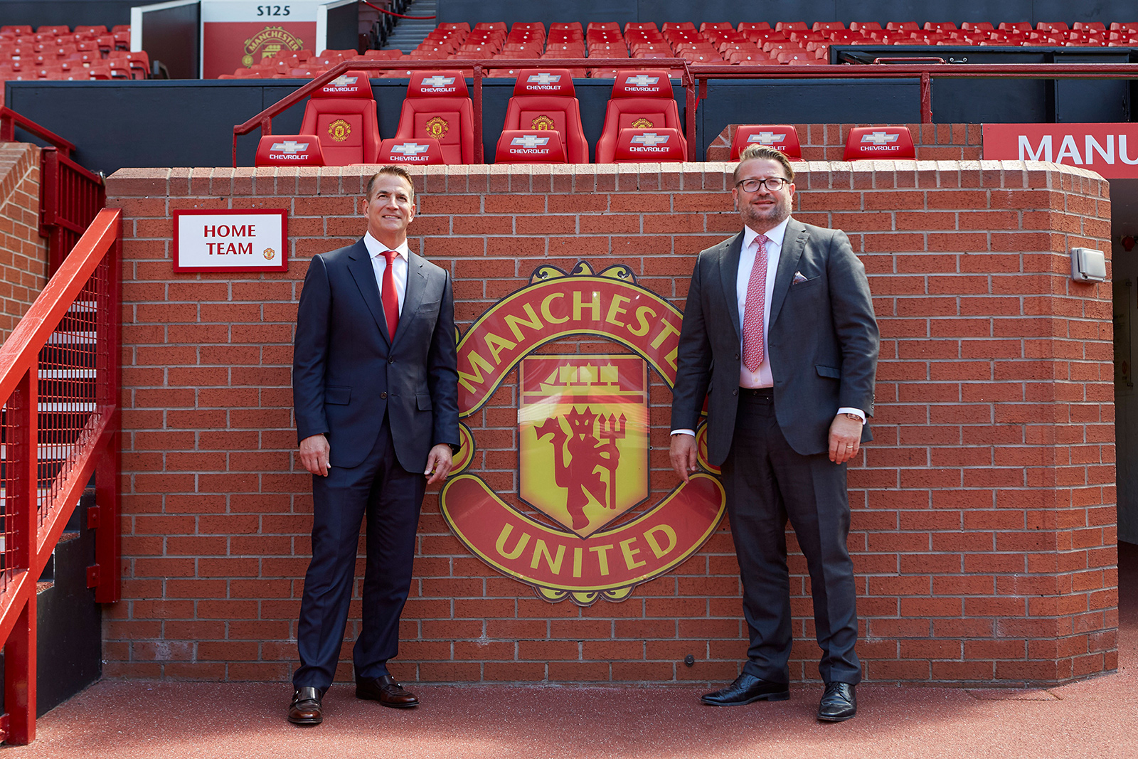 จากซ้าย ซีอีโอของโคห์เลอร์ และกรมการผู้จัดการบริหารแมนเชสเตอร์ ยูไนเต็ดนาย Richard Arnold ณ สนาม Old Trafford (รูปภาพ:Business Wire)