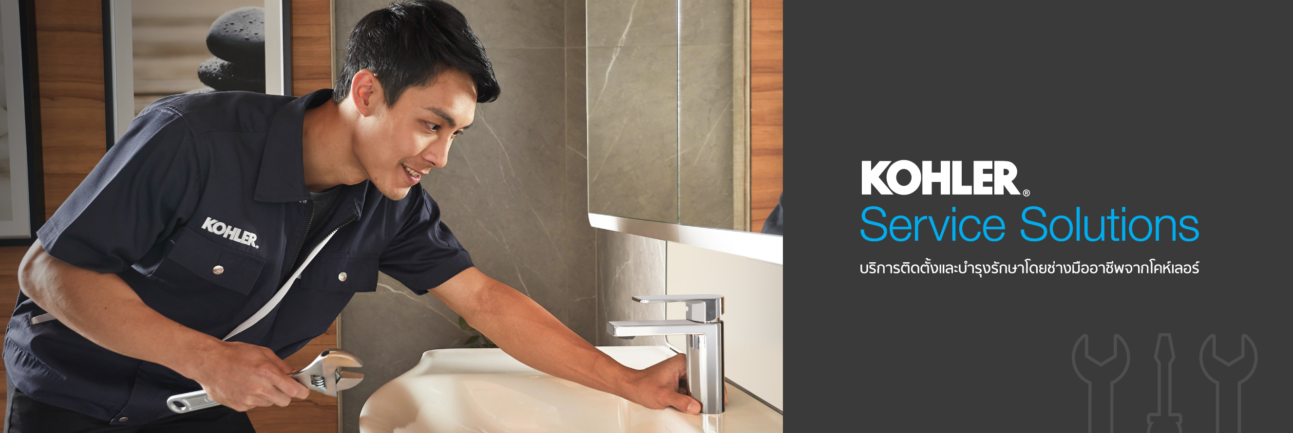 ด้วยมาตรฐานของโคห์เลอร์อันเป็นที่น่าเชื่อถือและได้รับการยอมรับมาอย่างยาวนานทั่วโลก พร้อมการเอาใจใส่เรื่องคุณภาพในทุกรายละเอียด วันนี้โคห์เลอร์ให้คุณมั่นใจยิ่งขึ้นด้วยบริการ KOHLER Service Solutions ที่ตอบสนองความสมบูรณ์แบบ ไร้กังวลเรื่องการบริการติดตั้งและบำรุงรักษา ด้วยทีมช่างผู้เชี่ยวชาญระดับมืออาชีพจากโคห์เลอร์ เพียบพร้อมด้วยอะไหล่และการบริการให้คำปรึกษาอย่างครบวงจร