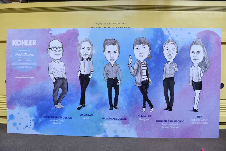 The six speakers were Joshua Judd – Design Director at Smallwood, Reynolds, Stewart, Stewart (SRSS), Robbyn Carter – Associate at Hirsch Bedner Associates Pte Ltd (HBA) Singapore, artist Kristine Oustrup Laureijs aka Mamakan, Aldwin Ong – Principal at Wilson Associates Singapore, interdisciplinary industrial designer Olivia Lee at Olivia Lee Studio, and Lun Cheak Tan – our Studio Director for Kohler Asia Pacific.